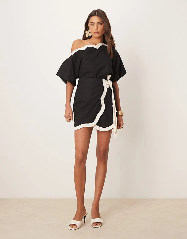Never Fully Dressed Contrast Cuff Animal Print Mini Dress In Red And Pink For Women Pink/red