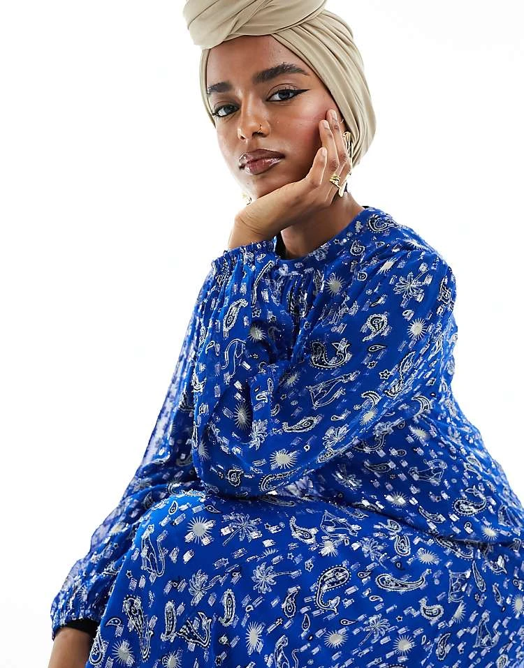 Never Fully Dressed Plus Asymmetric Off Shoulder Maxi Dress In Blue Sun Print For Women Cobalt